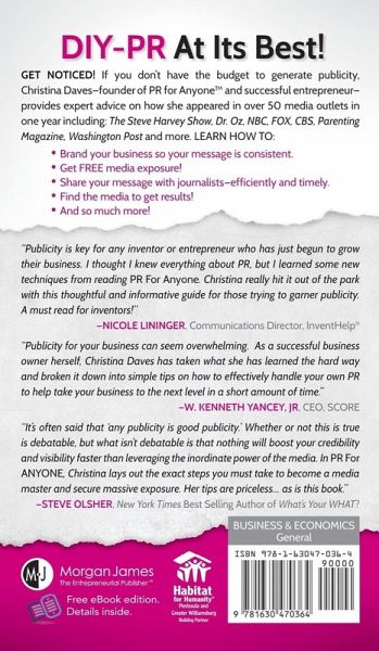 Christina Daves is a serial entrepreneur and award-winning inventor who founded "PR for Anyone." With no resources to promote her business, CastMedic Designs, she taught herself everything she could about PR to handle it herself. She had no experience in PR and no contacts in the industry but ended up appearing in over 50 media outlets (including national and local television, magazines, and radio) in her first year of business. From Steve Harvey and Dr. Oz to local affiliates of NBC, CBS, FOX, and the CW, to national publications like Parenting and Washington Post, Christina has been able to secure appearances in many major media outlets.