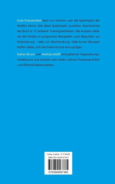 Mit jedem Satz offenbaren Pressesprecher, wie viel sie von den Regeln der Medien verstehen. Ein Beispiel: "Mit diesem Projekt, das auf der letzten Vorstandssitzung beschlossen wurde und ca. 9000 EUR kosten soll, wird vom Verein allein gegen 5 Bestimmungen des § 21 der Gemeindeordnung verstoßen." Dieser Satz verstößt allein gegen ein halbes Dutzend Regeln des journalistischen Schreibens. Wer nicht als unprofessionell abgestempelt werden will, sollte sie unbedingt kennen. Noch schlimmer aber ist es, wenn Pressemitteilungen falsch gegliedert sind oder mit irreführenden Betreffzeilen versendet werden. Auch eine kryptische Überschrift kann die Arbeit von Stunden schnell zunichte machen. Mit dem Verständnis journalistischer Arbeitsweisen beginnt man automatisch, solche Fehler zu vermeiden. Plötzlich ist logisch, wie man Pressemitteilungen versenden sollte, wie man einen Online-Pressebereich sinnvoll aufbaut und welche Kriterien Pressefotos erfüllen müssen. Brunn & Wolff kommen als gelernte Tageszeitungsredakteure aus der Praxis und liefern in "PR-Training" Hunderte anschaulicher Beispiele - gute und schlechte. Dazu kommen regelmäßige kurze Übungen und Trainingskontrollen. Nach 15 lockeren Trainingseinheiten weiß man nicht nur, dass Texte in PDF-Form zu senden für Redakteure lästig sein kann. Sondern man versteht auch, warum.In ihrem Buch räumen Brunn & Wolff auch mit Missverständnissen rund um Belegexemplare, Sperrfristen oder Interview-Freigaben auf, loten die Chancen und Grenzen von Social Media in der Pressearbeit aus und erläutern, wie man sich gegen falsche Berichterstattung zur Wehr setzt. Mit einer Anleitung zum Vermeiden von Leerstellen und ihren Hinweisen zu gefährlichen Bildverwendungen liefern die Autoren außerdem Tipps und Anregungen, die man in anderen PR-Handbüchern vergeblich sucht.