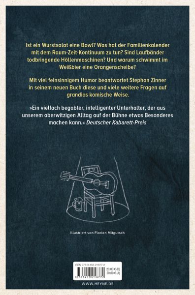 Als Schauspieler, Kabarettist und Musiker weiß Stephan Zinner: Das härteste Publikum wartet zuhause - die eigene Familie. Trotzdem stellt er sich gerne den Herausforderungen als Koch von trendigem Soulfood, Fahrdienstleiter, Christbaum-Chefeinkäufer, Heimwerker und Schwiegersohn. Dafür bekommt er zwar nicht immer Applaus, die Verletzungsgefahr ist hoch und die Gage niedrig, aber ein Lächeln ist eh viel mehr wert. Da hält man sogar die Welt da draußen aus, voller Scheuklappenträger auf ihrem eiligem Weg zur Selbstoptimierung. Zinners Kurzgeschichten erzählen von kleinen Siegen und fulminanten Alltagspleiten zwischen Bühne, Baumarkt und Familientisch. Getragen vom rustikalen Feingeist eines genialen Unterhaltungskünstlers, versammeln sie sich zu einem von Florian Mitgutsch illustrierten Prachtexemplar von Buch.
