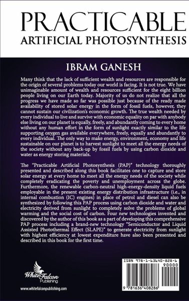 The "Practicable Artificial Photosynthesis (PAP)" technology described in this book facilitates one to harvest sunlight to meet all the energy needs of the society without any back-up from fossil fuels to meet all the energy needs of the society by using carbon dioxide and water as energy storing materials. The PAP process can completely eradicate the poverty and unemployment across the globe, and it can solve the problems of CO2 associated global warming and the related social cost of carbon problems completely. Four new technologies invented and discovered by the author of this book as a part of developing this comprehensive PAP process including a brand-new technology "Semiconductor and Liquid Assisted Photothermal Effect (SLAPE)" to generate electricity from sunlight with highest efficiency at lowest expenditure have also been presented and described in this book for the first time. Ultra-low cost EPDM rubber based membranes needed for alkaline electrolyzers and fuel cells also introduced in this book. About the Author: Dr. Ibram Ganesh, M.Sc., Ph.D. (Chemistry) is presently a scientist at International Advanced Research Centre for Powder Metallurgy and New Materials (ARCI), Hyderabad, India. He has carried out his Ph.D. work at IICT, Hyderabad, and obtained his doctoral degree in the year 1999. He received BOYSCAST and IUSSTF fellowships from Department of Science and Technology (DST), Govt. of India, to do post-doctoral research at University of Aveiro, Portugal, and Emory University, Atlanta, Georgia, USA, respectively, for one year period each. He invented a brand-new technology called "Semiconductor and Liquid Assisted Photothermal Effect (SLAPE)" for generating electricity from sunlight. He also experimentally discovered that electrochemical reduction of CO2 to CO is a reverse reaction of CO oxidation in air that does not involve protons in the reduction process. He is an author of 98 publications and inventor of 10 patents, and one of the top 2% scientists in the world.