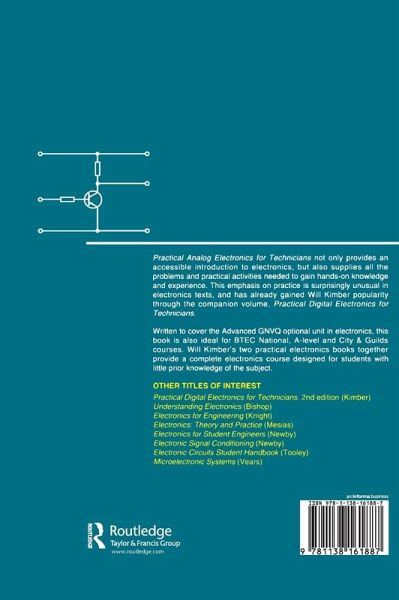 'Practical Analog Electronics for Technicians' not only provides an accessible introduction to electronics, but also supplies all the problems and practical activities needed to gain hands-on knowledge and experience. This emphasis on practice is surprisingly unusual in electronics texts, and has already gained Will Kimber popularity through the companion volume, 'Practical Digital Electronics for Technicians'. Written to cover the Advanced GNVQ optional unit in electronics, this book is also ideal for BTEC National, A-level electronics and City & Guilds courses. Together with 'Practical Digital Electronics for Technicians', this text comprises a complete practical electronics course designed for students with little prior knowledge of the subject.