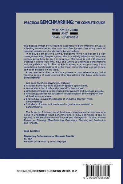 by Bob Camp The business improvement topic and quality tool called benchmarking is becoming widely understood and broadly applied. There are now applica firms that tions in almost all segments of the economy including industrial either produce a product or a service, non-profit organizations such as healthcare, government and education. The approach is starting to spread around the globe with initiatives in Europe, Asia Pacific and South America. This is commendable and reassuring and must show that there is significant interest in the approach and that it works. What is missing, however, are books and reference material that are not solely prepared in the US where benchmarking started. Theses would include examples of applications relevant to the local area and industries. They would include references to articles written about benchmarking appearing in local publications. In this fashion those interested would have near hand case histories of the use of benchmarking and therefore become encouraged to use the technique. Zairi and Leonard have done the benchmarking community a real service by documenting the European view and application of benchmark ing to a wide range of examples. But they have not stopped there. Their text includes treatment of a number of related facets of benchmarking that makes this a fairly thorough text.