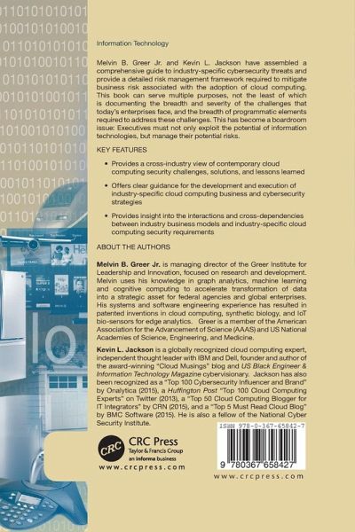 Melvin Greer and Kevin Jackson have assembled a comprehensive guide to industry-specific cybersecurity threats and provide a detailed risk management framework required to mitigate business risk associated with the adoption of cloud computing. This book can serve multiple purposes, not the least of which is documenting the breadth and severity of the challenges that today's enterprises face, and the breadth of programmatic elements required to address these challenges. This has become a boardroom issue: Executives must not only exploit the potential of information technologies, but manage their potential risks. Key Features ¿ Provides a cross-industry view of contemporary cloud computing security challenges, solutions, and lessons learned ¿ Offers clear guidance for the development and execution of industry-specific cloud computing business and cybersecurity strategies ¿ Provides insight into the interaction and cross-dependencies between industry business models and industry-specific cloud computing security requirements