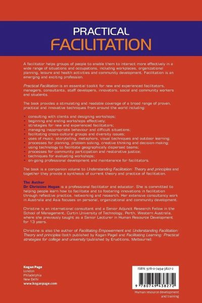 Dr. Christine Hogan is a professional facilitator and educator. As a consultant, she has focused on personal, organizational, and community development in many countries around the world. She is the author of Practical Facilitation (Kogan Page) and is a member of the International Association of Facilitators.