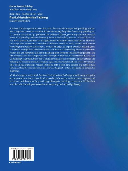 This book addresses practical issues that reflect the current landscape of GI pathology practice and is organized in such a way that fits the fast-pacing daily life of practicing pathologists. It contains more than 540 questions that address difficult, prevailing and controversial issues in GI pathology that are frequently encountered in daily practice and consult service. For most questions, answers are straightforward with ample literature support. However, true diagnostic controversies and clinical dilemma cannot be easily resolved with current knowledge and available information. To such challenges, an expert approach regarding how to synthesize complicated topics and clearly communicate the thinking process is valuable to readers and can help guide clinicians making optimal treatment plans for their patients. The latter types of answers are highly enriched throughout the book. Distinct from other existing GI pathology textbooks, this book is primarily organized according todisease entities and pathological processes instead of specific organs and anatomic locations. Guided by chapter titles and listed questions, readers should be able to look up a disease or a pathological feature and find the most important and relevant diagnostic criteria and pertinent differential diagnoses.