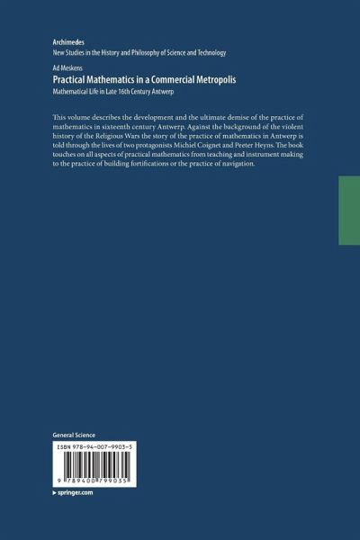 Describes the development and the ultimate demise of the practice of mathematics in sixteenth century Antwerp. Against the background of the violent history of the Religious Wars the story of the practice of mathematics in Antwerp is told through the lives of two protagonists Michiel Coignet and Peeter Heyns. The book touches on all aspects of practical mathematics from teaching and instrument making to the practice of building fortifications of the practice of navigation.