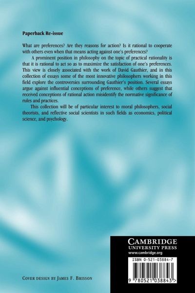 What are preferences and are they reasons for action? Is it rational to cooperate with others even if that entails acting against one's preferences? The dominant position in philosophy on the topic of practical rationality is that one acts so as to maximize the satisfaction of one's preferences. This view is most closely associated with the work of David Gauthier, and in this new collection of essays some of the most innovative philosophers currently working in this field explore the controversies surrounding Gauthier's position. Several essays argue against influential conceptions of preference, while others suggest that received conceptions of rational action misidentify the normative significance of rules and practices. This collection will be of particular interest to philosophers of social theory and to reflective social scientists in such fields as economics, political science and psychology.