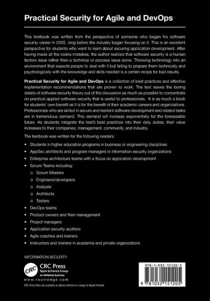 Practical Security for Agile and DevOps is a collection of best practices and effective implementation recommendations that are proven to work. The text leaves the boring details of software security theory out of the discussion as much as possible to concentrate on practical applied software security that is useful to professionals. It is as much a book for students' own benefit as it is for the benefit of their academic careers and organizations. Professionals who are skilled in secure and resilient software development and related tasks are in tremendous demand. This demand will increase exponentially for the foreseeable future. As students integrate the text's best practices into their daily duties, their value increases to their companies, management, community, and industry.