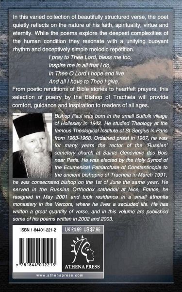 In this varied collection of beautifully structured verse, the poet quietly reflects on the nature of his faith, spirituality, virtue and eternity. While the poems explore the deepest complexities of the human condition they resonate with a unifying buoyant rhythm and deceptively simple melodic repetition. I pray to Thee Lord, bless me too. Inspire me in all that I do, In Thee O Lord I hope and live And all I have to Thee I give. From poetic renditions of Bible stories to heartfelt prayers, this selection of poetry by the Bishop of Tracheia will provide comfort, guidance and inspiration to readers of all ages.