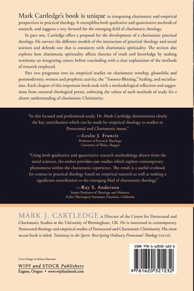 Mark Cartledge's book is unique in integrating charismatic and empirical perspectives in practical theology. It exemplifies both qualitative and quantitative methods of research, and suggests a way forward for the emerging field of charismatic theology. In part one, Cartledge offers a proposal for the development of a charismatic practical theology. He surveys the different models of the interaction of practical theology and social sciences and defends one that is consistent with charismatic spirituality. The section also explores how charismatic spirituality affects theories of truth and knowledge by making testimony an integrating center, before concluding with a clear explanation of the methods of research employed. Part two progresses into six empirical studies on charismatic worship, glossolalia and postmodernity, women and prophetic activity, the ""Toronto Blessing,"" healing, and socialization. Each chapter of this important book ends with a methodological reflection and suggestions from renewed theological praxis, enforcing the values of such methods of study for a clearer understanding of charismatic Christianity.