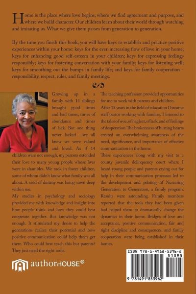 Home is the place where love begins, where we find agreement and purpose, and where we build character. Our children learn about their world through watching and imitating us. What we give them passes from generation to generation. By the time you finish this book, you will have keys to establish and practice positive experiences within your home: keys for the ever-increasing flow of love in your home; keys for enhancing good self-esteem in your children; keys for expressing feelings responsibly; keys for fostering conversation with your family; keys for listening well; keys for smoothing out the bumps in family life; and keys for family cooperation - responsibility, respect, rules, and family meetings.