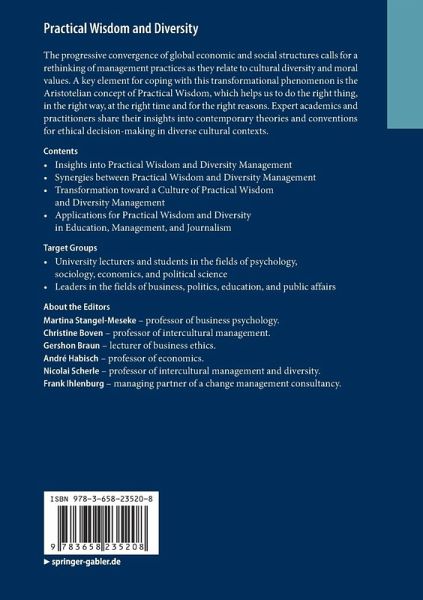 The progressive convergence of global economic and social structures calls for a rethinking of management practices as they relate to cultural diversity and moral values. A key element for coping with this transformational phenomenon is the Aristotelian concept of Practical Wisdom, which helps us to do the right thing, in the right way, at the right time and for the right reasons. Expert academics and practitioners share their insights into contemporary theories and conventions for ethical decision-making in diverse cultural contexts.