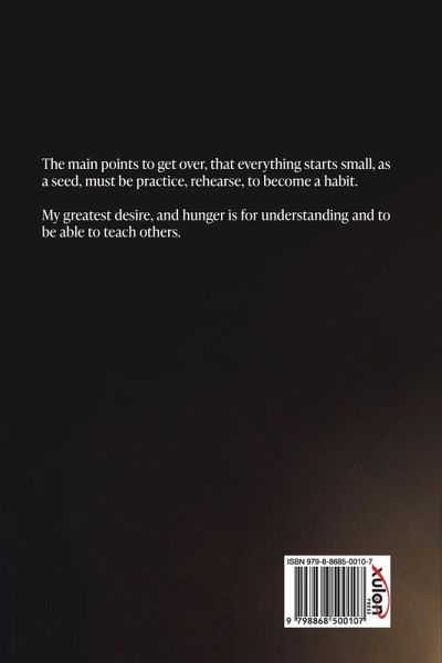 The main points to get over, that everything starts small, as a seed, must be practice, rehearse, to become a habit. My greatest desire, and hunger is for understanding and to be able to teach others.