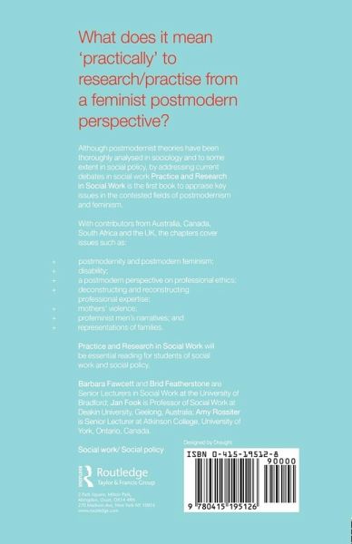 Although postmodernist theory has been related to and explored in sociology and social policy, this book is amongst the first to apply the theories to social work, and relate them to current debates. Contributors come from the UK, Australia, South Africa and Canada and many have professional experience as social workers. They appraise the key issues in the contested field of postmodernism and feminism and focus on their applications to practice, research and education in social work.