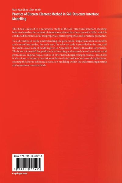 This book is related to a parametric study of the soil-structural interface shearing behavior based on the numerical simulations of interface shear test with DEM, which is conducted from the role of soil properties, particle properties and structural properties. To aid readers in easily understanding the generation, implementation of models and controlling modes, for each part, the relevant code is provided in the text, and the whole source code of model is given in Appendix to share with readers for practice. The book is intended for graduate-level teaching and research in soil mechanics and geotechnical engineering, as well as in other related engineering specialties. This book is also of use to industry practitioners due to the inclusion of real-world applications, opening the door to advanced courses on modeling within the industrial engineering and operations research fields.