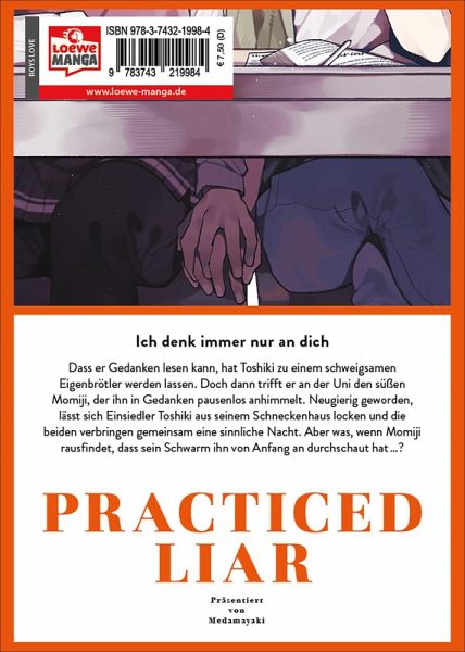 Practiced Liar ist eine süße, romantische Liebesgeschichte zwischen zwei eigenbrötlerischen Universitätsstudenten. Ein witziger Boys-Love-Manga über das Gedankenlesen und Wahrnehmen ungefilterter Gefühle. Für Fans von Was sich neckt, das liebt sich und Cherry Magic!