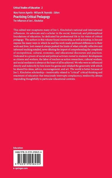 This edited text recaptures many of Joe L. Kincheloe's national and international influences. An advocate and a scholar in the social, historical, and philosophical foundations of education, he dedicated his professional life to his vision of critical pedagogy. The authors in this volume found mentorship, as well as kinship, in Joe and express the many ways in which he and his work made profound differences in their work and lives. Joe's research always pushed the limits of what critically reflective and informed teaching entailed, never diluting the import of comprehending the complexity of sociopolitical, cultural, economic, and educational discourses and practices. Dedicated to a praxis of social and political activism rooted in students' development as citizens and workers, the labor of teachers as action researchers, cultural workers, and social mediators is always at the heart of all he achieved. We who were so influenced directly and indirectly by him knew his geniusand relished the generosity with which he shared his ideas, advice, encouragement, and art. The world is better because of Joe L. Kincheloe scholarship-inextricably related to "critical" critical thinking and enactment of education that tenaciously interrupts complacency, mediocrity, always responding thoughtfully to particular educational contexts.