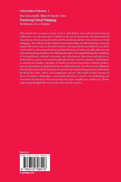 This edited text recaptures many of Joe L. Kincheloe's national and international influences. An advocate and a scholar in the social, historical, and philosophical foundations of education, he dedicated his professional life to his vision of critical pedagogy. The authors in this volume found mentorship, as well as kinship, in Joe and express the many ways in which he and his work made profound differences in their work and lives. Joe's research always pushed the limits of what critically reflective and informed teaching entailed, never diluting the import of comprehending the complexity of sociopolitical, cultural, economic, and educational discourses and practices. Dedicated to a praxis of social and political activism rooted in students' development as citizens and workers, the labor of teachers as action researchers, cultural workers, and social mediators is always at the heart of all he achieved. We who were so influenced directly and indirectly by him knew his geniusand relished the generosity with which he shared his ideas, advice, encouragement, and art. The world is better because of Joe L. Kincheloe scholarship-inextricably related to "critical" critical thinking and enactment of education that tenaciously interrupts complacency, mediocrity, always responding thoughtfully to particular educational contexts.