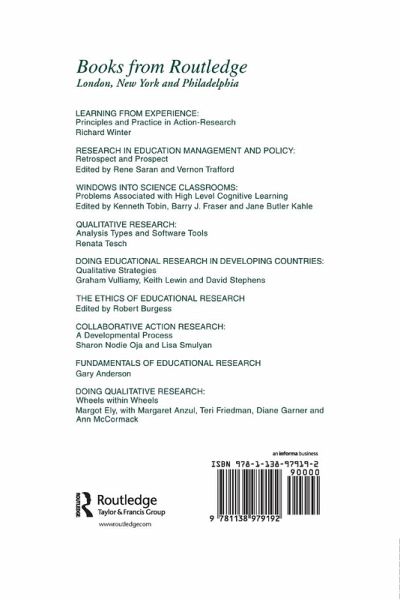First Published in 1990. Central to the vision of teachers researching their own practice was the belief that the improvement of teaching and learning in schools could best be achieved through the development of the critical and creative powers of individual teachers. The research studies in this book, which reflect and extend that vision, serve as accounts of the learning experiences of a group of practitioner researchers. The book has two closely interrelated purposes. The first is to provide information and ideas on the areas of the formal and hidden curriculum into which the practitioners enquired. The second purpose is to provide methodological ideas and assistance for those already engaged in practitioner research and to motivate others to seek an opportunity to undertake some form of research-based enquiry. The two purposes are closely interrelated because of the value the contributors ascribe to taking a research stance to teaching.