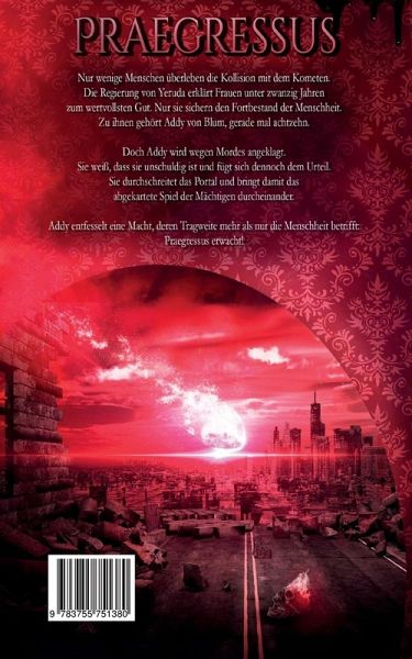 Nur wenige Menschen überleben die Kollision mit dem Kometen. Die Regierung von Yeruda erklärt Frauen unter zwanzig Jahren zum wertvollsten Gut. Nur sie sichern den Fortbestand der Menschheit. Zu ihnen gehört Addy von Blum, gerade mal achtzehn.Doch Addy wird wegen Mordes angeklagt. Sie weiß, dass sie unschuldig ist und fügt sich dennoch dem Urteil.Sie durchschreitet das Portal und bringt damit das abgekartete Spiel der Mächtigen durcheinander.Addy entfesselt eine Macht, deren Tragweite mehr als nur die Menschheit betrifft:Praegressus erwacht!