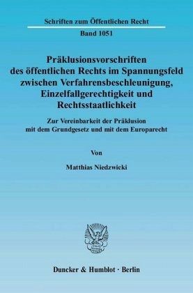 Matthias Niedzwicki beschäftigt sich mit der Frage der Vereinbarkeit materieller Präklusionsvorschriften des öffentlichen Rechts mit dem Grundgesetz und mit dem Europäischen Gemeinschaftsrecht. Dabei stehen Präklusionsvorschriften des Umwelt- und Technikrechts im Vordergrund.