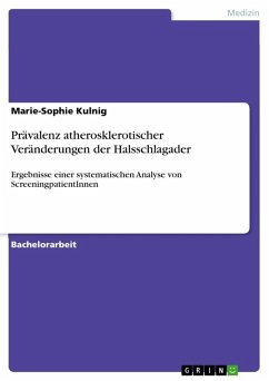 Bachelorarbeit aus dem Jahr 2015 im Fachbereich Gesundheit - Sonstiges, Note: 2, FH Campus Wien, Sprache: Deutsch, Abstract: Das Ziel dieser Bachelorarbeit ist es, in einem Kollektiv von 50 TeilnehmerInnen zu evaluieren, ob die Trefferquote bei erstmalig untersuchten PatientInnen mit Verdacht auf eine Verengung der Arteria carotis dem Vorhersagewert von 30% entspricht.Es handelt sich um eine prospektive Beobachtungsstudie mit 50 TeilnehmerInnen. Davon sind 29 Männer und 21 Frauen. Alle TeilnehmerInnen sind über 18 Jahre alt. Sie haben keine bereits diagnostizierte Carotisstenose und waren zum ersten Mal zur Untersuchung der Karotis im Allgemeinen Krankenhaus. Der Überweisungsgrund war die Verdachtsdiagnose einer Carotisstenose.Die Standarduntersuchung der bildgebenden Diagnostik der Carotisstenose ist die farbkodierte Duplexsonographie, sie ermöglicht ein nicht invasives Auffinden der Gefäße und eine Differenzierung der Stenose anhand der Strömungsverhältnisse.