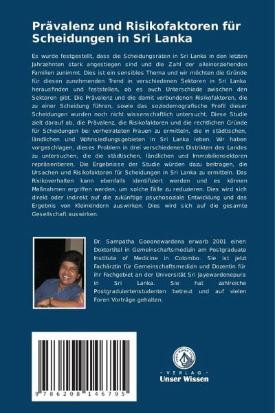 Es wurde festgestellt, dass die Scheidungsraten in Sri Lanka in den letzten Jahrzehnten stark angestiegen sind und die Zahl der alleinerziehenden Familien zunimmt. Dies ist ein sensibles Thema und wir möchten die Gründe für diesen zunehmenden Trend in verschiedenen Sektoren in Sri Lanka herausfinden und feststellen, ob es auch Unterschiede zwischen den Sektoren gibt. Die Prävalenz und die damit verbundenen Risikofaktoren, die zu einer Scheidung führen, sowie das soziodemografische Profil dieser Scheidungen wurden noch nicht wissenschaftlich untersucht. Diese Studie zielt darauf ab, die Prävalenz, die Risikofaktoren und die rechtlichen Gründe für Scheidungen bei verheirateten Frauen zu ermitteln, die in städtischen, ländlichen und Wohnsiedlungsgebieten in Sri Lanka leben. Wir haben vorgeschlagen, dieses Problem in drei verschiedenen Distrikten des Landes zu untersuchen, die die städtischen, ländlichen und Immobiliensektoren repräsentieren. Die Ergebnisse der Studie würden dazu beitragen, die Ursachen und Risikofaktoren für Scheidungen in Sri Lanka zu ermitteln. Das Risikoverhalten kann ebenfalls identifiziert werden und es können Maßnahmen ergriffen werden, um solche Fälle zu reduzieren. Dies wird sich direkt oder indirekt auf die zukünftige psychosoziale Entwicklung und das Ergebnis von Kleinkindern auswirken. Dies wird sich auf die gesamte Gesellschaft auswirken.