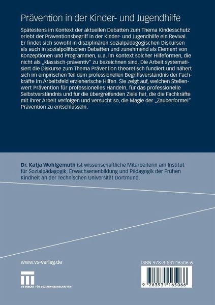 Spätestens im Kontext der aktuellen Debatten zum Thema Kindesschutz erlebt der Präventionsbegriff in der Kinder- und Jugendhilfe ein Revival. Er findet sich sowohl in disziplinären sozialpädagogischen Diskursen als auch in sozialpolitischen Debatten und zunehmend als Element von Konzeptionen und Programmen, u.a. im Kontext solcher Hilfeformen, die nicht als "klassisch-präventiv" zu bezeichnen sind. Die Arbeit systematisiert die Diskurse zum Thema Prävention theoretisch fundiert und nähert sich im empirischen Teil dem professionellen Begriffsverständnis der Fachkräfte im Arbeitsfeld erzieherische Hilfen. Sie zeigt auf, welchen Stellenwert Prävention für professionelles Handeln, für das professionelle Selbstverständnis und für die übergreifenden Ziele hat, die die Fachkräfte mit ihrer Arbeit verfolgen und versucht so, die Magie der "Zauberformel" Prävention zu entschlüsseln.