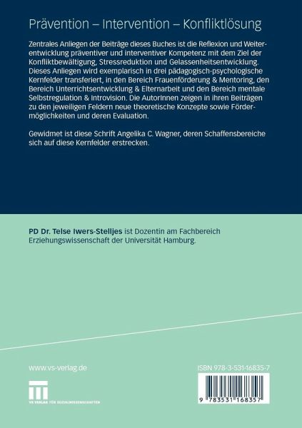 Prävention - Intervention - Konfliktlösung durch Elternarbeit und Unterrichtsbeobachtung.- Beobachten als Grundlage für Feedback bei Übungen zum Schriftspracherwerb.- Untersuchungen zu Wirkungen eines präventiven universellen Elternkurses auf die Erziehungskompetenz der Eltern - ein Bericht aus der Forschungspraxis im Feld.- Qualitativ gewichtige Eltern(mit)arbeit auf Augenhöhe - Gewünscht? Verwünscht? Gefürchtet?.- Impulse von Nachträglichem Lauten Denken für den Religionsunterricht in Hamburg und Europa.- Prävention - Intervention - Konfliktlösung durch Frauenförderung.- Aufstiegskompetenz von Frauen: Hindernisse und Förderung.- "... man gewöhnt sich daran, immer nur sich selber zu loben" Psychosoziale Anforderungen des Bildungsaufstiegs und der sozialen Mobilität junger Frauen.- Mentoring bei der Arbeitsstelle Expertinnen- Beratungsnetz/Mentoring der Universität Hamburg.- Zur Konzeption und Entwicklung des Münchner Expertinnen-Beratungsnetzes 1994-2007: Von der beruflichen Orientierung zum Mentoring für Führungsnachwuchskräfte.- Mentoring von Frauen für Frauen.- Prävention - Intervention - Konfliktlösung durch mentale Selbstregulation.- Paradigmenwechsel in der Vermittlung geschlechtersensibler Analysekompetenzen. Beispiel eines Lehrexperiments im Studiengang Soziale Arbeit.- Die Anwendung von Introvision zur Verringerung der Belastung durch Tinnitus und Verbesserung der Hörfähigkeit.- Die Bedeutung von Introvision für die Gestaltung von Veränderungsprozessen in Gruppen und Organisationen.- Die Auflösung von Schreibblockaden durch Introvision: Ergebnisse einer Pilotstudie.- Kluges Zielsetzen durch Mentales Kontrastieren von Zukunft und Realität.- Introvision als Entspannungsverfahren - Auflösung von chronischenNackenverspannungen durch Konstatierendes Aufmerksames Wahrnehmen und Introvision.