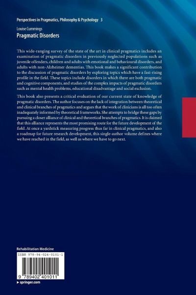 "Seeing that in recent years the field of clinical pragmatics has undergone significant changes as a healthy line of research within clinical language studies, Louise Cummings's Pragmatic disorders is a timely and welcome contribution to the field. ... Besides being a very informative volume, the book suggests points of departure for further research in the field. The book has indeed made the study of pragmatic disorders more innovative." (Vahid Parvaresh, Intercultural Pragmatics, Vol. 13 (2), 2016)