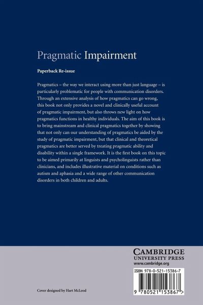 Pragmatics - the way we communicate using more than just language - is particularly problematic for people with speech disorders. Through an extensive analysis of how pragmatics can go wrong, this 2007 book not only provides a clinically useful account of pragmatic impairment, but it also throws light on how pragmatics functions in healthy individuals. Michael Perkins brings mainstream and clinical pragmatics together by showing that not only can our understanding of pragmatics be aided by the study of pragmatic impairment, but that clinical and theoretical pragmatics are better served by treating pragmatic ability and disability within a single framework. It is a comprehensive book aimed primarily at linguists and psycholinguists rather than clinicians, and includes illustrative material on conditions such as autism and aphasia and a wide range of other communication disorders in both children and adults.
