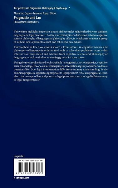 Using the most sophisticated tools available to pragmatics, sociolinguistics, cognitive sciences and legal theory, an interdisciplinary, international group of authors address questions like: Does legal interpretation differ from ordinary understanding? Is the common pragmatic apparatus appropriate to legal practice? What can pragmatics teach about theconcept of law and pervasive legal phenomena such as testimony or legal disagreements?