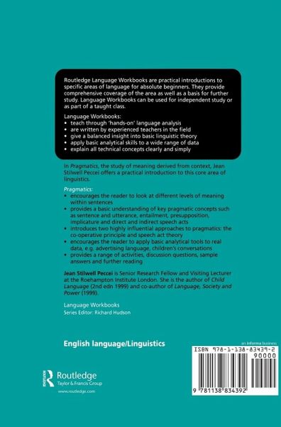 In Pragmatics, the study of meaning derived from context, Jean Stilwell Peccei offers a practical introduction to this core area of linguistics.