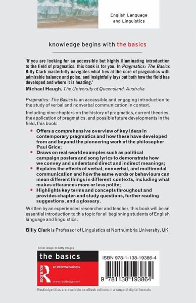 "If you are looking for an accessible but highly illuminating introduction to the field of pragmatics this book is for you. In Pragmatics: The Basics Billy Clark masterfully navigates what lies at the core of pragmatics with admirable balance and poise, and insightfully lays out both how the field has developed and where it is heading."