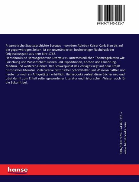 Pragmatische Staatsgeschichte Europas - von dem Ableben Kaiser Carls 6 an bis auf die gegenwärtigen Zeiten ist ein unveränderter, hochwertiger Nachdruck der Originalausgabe aus dem Jahr 1763.