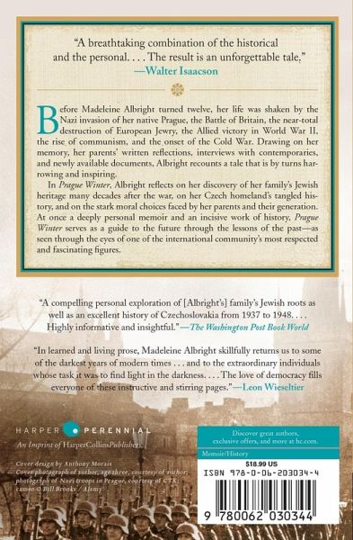 Moving from the thousand-year-old Prague Castle to the bomb shelters of London, from the desolate prison ghetto of Terezin to the war councils of Churchill, Stalin, Roosevelt and Hitler, the author reflects on her discovery of her family's Jewish heritage decades after the war, and her Czech homeland's tangled history.