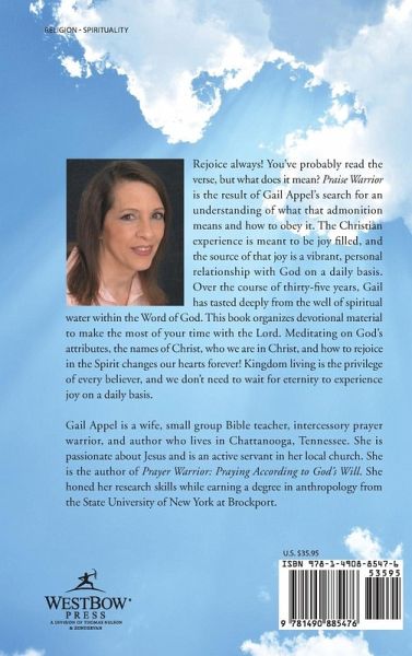Rejoice always! You've probably read the verse, but what does it mean? Praise Warrior is the result of Gail Appel's search for an understanding of what that admonition means and how to obey it. The Christian experience is meant to be joy filled, and the source of that joy is a vibrant, personal relationship with God on a daily basis. Over the course of thirty-five years, Gail has tasted deeply from the well of spiritual water within the Word of God. This book organizes devotional material to make the most of your time with the Lord. Meditating on God's attributes, the names of Christ, who we are in Christ, and how to rejoice in the Spirit changes our hearts forever! Kingdom living is the privilege of every believer, and we don't need to wait for eternity to experience joy on a daily basis.