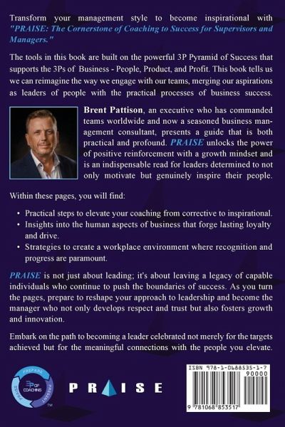 Transform your management style to become inspirational with "PRAISE: The Cornerstone of Coaching to Success for Supervisors and Managers." The tools in this book are built on the powerful 3P Pyramid of Success that supports the 3Ps of Business - People, Product, and Profit. This book tells us we can reimagine the way we engage with our teams, merging our aspirations as leaders of people with the practical processes of business success. Brent Pattison, an executive who has commanded teams worldwide and now a seasoned business management consultant, presents a guide that is both practical and profound. "PRAISE" unlocks the power of positive reinforcement with a growth mindset and is an indispensable read for leaders determined to not only motivate but genuinely inspire their people. Within these pages, you will find:Practical steps to elevate your coaching from corrective to inspirational. Insights into the human aspects of business that forge lasting loyalty and drive. Strategies to create a workplace environment where recognition and progress are paramount. "PRAISE" is not just about leading; it's about leaving a legacy of capable individuals who continue to push the boundaries of success. As you turn the pages, prepare to reshape your approach to leadership and become the manager who not only develops respect and trust but also fosters growth and innovation. Embark on the path to becoming a leader celebrated not merely for the targets achieved but for the meaningful connections with the people you elevate.