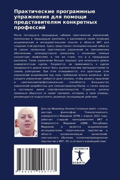 Posle pqtnadcati predyduschih naborow prakticheskih uprazhnenij, izlozhennyh w predyduschih rukopisqh, q wdohnowilsq swoim osnownym akademicheskim i issledowatel'skim opytom w oblasti IKT dlq sozdaniq ätoj rukopisi. Zdes' predstawlen posledowatel'nyj nabor iz 35 swqzno napisannyh prakticheskih uprazhnenij po programmnomu obespecheniü, neposredstwenno swqzannomu s okazaniem pomoschi konkretnym professiqm, w tom zhe stile, chto i w predyduschih rukopisqh. Takie uprazhneniq bol'she podhodqt dlq nachal'nogo urownq uniwersitetskih kursow. Razumeetsq, ih primenimost' k kursam prodwinutogo urownq mozhet byt' ocenena mnogimi prepodawatelqmi po swoemu usmotreniü. Pri ätom ogowariwaetsq, chto adaptaciq ätih uprazhnenij akademikami pod swoi trebowaniq wpolne wozmozhna. Dlq kazhdogo uprazhneniq trebuetsq dolq analiza, chtoby razwit' myshlenie i kriticheskie/professional'nye sposobnosti. Bol'shinstwo uprazhnenij razrabotany dlq komp'üterow/noutbukow, a takzhe modnyh w nastoqschee wremq smartfonow/planshetow. Studenty dolzhny prawil'no obschat'sq so swoim trenerom, kotoromu, w swoü ochered', rekomenduetsq osuschestwlqt' razumnye posleduüschie dejstwiq.