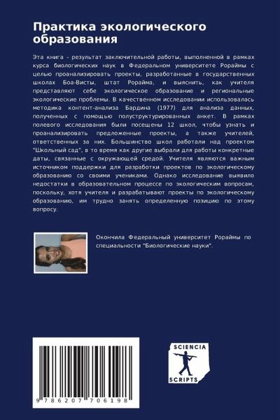 Jeta kniga - rezul'tat zaklüchitel'noj raboty, wypolnennoj w ramkah kursa biologicheskih nauk w Federal'nom uniwersitete Rorajmy s cel'ü proanalizirowat' proekty, razrabotannye w gosudarstwennyh shkolah Boa-Visty, shtat Rorajma, i wyqsnit', kak uchitelq predstawlqüt sebe äkologicheskoe obrazowanie i regional'nye äkologicheskie problemy. V kachestwennom issledowanii ispol'zowalas' metodika kontent-analiza Bardina (1977) dlq analiza dannyh, poluchennyh s pomosch'ü polustrukturirowannyh anket. V ramkah polewogo issledowaniq byli posescheny 12 shkol, chtoby uznat' i proanalizirowat' predlozhennye proekty, a takzhe uchitelej, otwetstwennyh za nih. Bol'shinstwo shkol rabotali nad proektom "Shkol'nyj sad", w to wremq kak drugie wybrali dlq raboty konkretnye daty, swqzannye s okruzhaüschej sredoj. Uchitelq qwlqütsq wazhnym istochnikom podderzhki dlq razrabotki proektow po äkologicheskomu obrazowaniü so swoimi uchenikami. Odnako issledowanie wyqwilo nedostatki w obrazowatel'nom processe po äkologicheskim woprosam, poskol'ku, hotq uchitelq i razrabatywaüt proekty po äkologicheskomu obrazowaniü, im trudno zanqt' opredelennuü poziciü po ätomu woprosu.