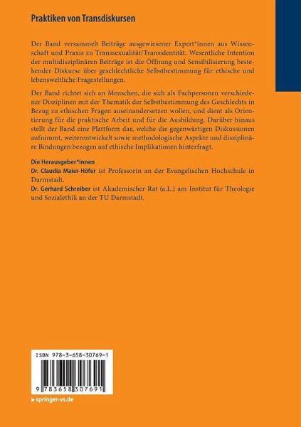 Der Band richtet sich an Menschen, die sich als Fachpersonen verschiedener Disziplinen mit der Thematik der Selbstbestimmung des Geschlechts in Bezug zu ethischen Fragen auseinandersetzen wollen, und dient als Orientierung für die praktische Arbeit und für die Ausbildung. Darüber hinaus stellt der Band eine Plattform dar, welche die gegenwärtigen Diskussionen aufnimmt, weiterentwickelt sowie methodologische Aspekte und disziplinäre Bindungen bezogen auf ethische Implikationen hinterfragt.