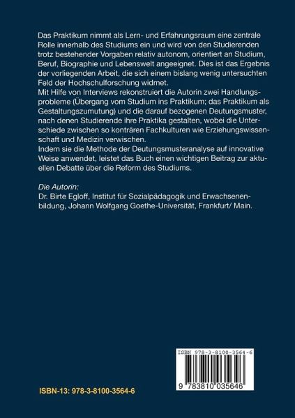 Das Praktikum nimmt als Lern- und Erfahrungsraum eine zentrale Rolle innerhalb des Studiums ein und wird von den Studierenden trotz bestehender Vorgaben relativ autonom, orientiert an Studium, Beruf, Biographie und Lebenswelt angeeignet. Dies ist das Ergebnis der vorliegenden Arbeit, die sich einem bislang wenig untersuchten Feld der Hochschulforschung widmet. Mit Hilfe von Interviews rekonstruiert die Autorin zwei Handlungsprobleme (Übergang vom Studium ins Praktikum; das Praktikum als Gestaltungszumutung) und die darauf bezogenen Deutungsmuster, nach denen Studierende ihre Praktika gestalten, wobei die Unterschiede zwischen so konträren Fachkulturen wie Erziehungswissenschaft und Medizin verwischen. Indem sie die Methode der Deutungsmusteranalyse auf innovative Weise anwendet, leistet das Buch einen wichtigen Beitrag zur aktuellen Debatte über die Reform des Studiums.