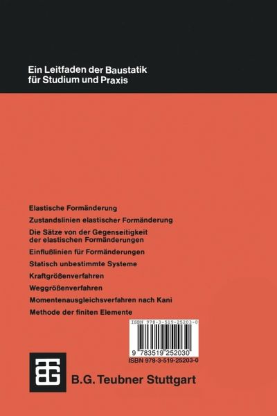 Ziel dieses 3. Teiles der "Praktischen Baustatik" ist die Vertiefung der Kenntnisse für die Behandlung statisch unbestimmter Systeme. Er wendet sich vornehmlich an die Studenten des Bauingenieurwesens der oberen Semester von Fachhochschulen und Technischen Universitäten sowie an die in der Praxis tätigen Bauingenieure. Für die Berechnung statisch unbestimmter Systeme ist die genaue Kenntnis der Form änderungsgesetze von grundlegender Bedeutung; sämtliche Formänderungen lassen sich mit dem Prinzip der virtuellen Arbeit berechnen. Der gründlichen Behandlung dieses wichtigen Hilfsmittels des Kraftgrößenverfahrens wird deshalb ein besonders breiter Raum zuteil. In diesem Abschnitt findet der Leser auch die Ableitung der w-Werte und W-Gewichte sowie die wichtigen Sätze von Betti und Maxwell. Betrachtungen über die kinematische Unverschieblichkeit und über die statische Unbestimmtheit ebener und räum licher Tragwerke schließen sich an. Mit Hilfe dieser Grundlagen wird das Kraftgrößenver fahren zur Bestimmung der Schnittgrößen und EinflußIinien entwickelt; einfach und mehr fach statisch unbestimmte Systeme werden für ruhende und bewegliche Lasten behandelt. Die zweite Methode der Berechnung statisch unbestimmter Systeme ist das Weggrößen verfahren. Dieses Verfahren wird oft mit Vorteil bei statischen Untersuchungen vielfach statisch unbestimmter Systeme, besonders auch der Rahmen, benutzt; deshalb wird seine Anwendung an solchen Tragwerken gezeigt. Dabei wird auch dargestellt, wie sich der Einfluß von Wärmewirkungen mit diesem Verfahren erfassen läßt.