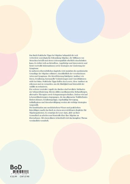 Das Buch Praktische Tipps bei Migräne behandelt die weit verbreitete neurologische Erkrankung Migräne, die Millionen von Menschen betrifft und deren Lebensqualität erheblich einschränken kann. Es richtet sich an Betroffene, Angehörige und Interessierte und bietet wertvolle Informationen sowie Strategien zur Linderung der Symptome. In mehreren übersichtlichen Kapiteln wird zunächst die medizinische Grundlage der Migräne erläutert, einschließlich der verschiedenen Arten und Symptome. Die Identifizierung häufigster Auslöser wie Stress, Ernährung, hormonelle Veränderungen und Umweltfaktoren steht…mehr
