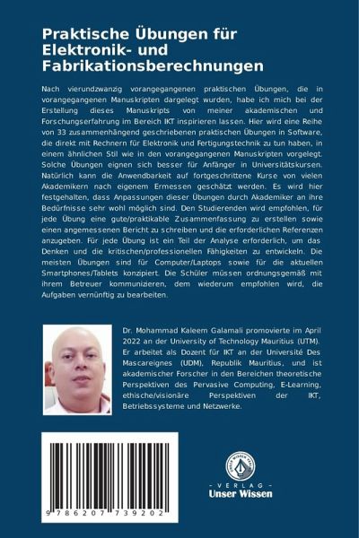 Nach vierundzwanzig vorangegangenen praktischen Übungen, die in vorangegangenen Manuskripten dargelegt wurden, habe ich mich bei der Erstellung dieses Manuskripts von meiner akademischen und Forschungserfahrung im Bereich IKT inspirieren lassen. Hier wird eine Reihe von 33 zusammenhängend geschriebenen praktischen Übungen in Software, die direkt mit Rechnern für Elektronik und Fertigungstechnik zu tun haben, in einem ähnlichen Stil wie in den vorangegangenen Manuskripten vorgelegt. Solche Übungen eignen sich besser für Anfänger in Universitätskursen. Natürlich kann die Anwendbarkeit auf fortgeschrittene Kurse von vielen Akademikern nach eigenem Ermessen geschätzt werden. Es wird hier festgehalten, dass Anpassungen dieser Übungen durch Akademiker an ihre Bedürfnisse sehr wohl möglich sind. Den Studierenden wird empfohlen, für jede Übung eine gute/praktikable Zusammenfassung zu erstellen sowie einen angemessenen Bericht zu schreiben und die erforderlichen Referenzen anzugeben. Für jede Übung ist ein Teil der Analyse erforderlich, um das Denken und die kritischen/professionellen Fähigkeiten zu entwickeln. Die meisten Übungen sind für Computer/Laptops sowie für die aktuellen Smartphones/Tablets konzipiert. Die Schüler müssen ordnungsgemäß mit ihrem Betreuer kommunizieren, dem wiederum empfohlen wird, die Aufgaben vernünftig zu bearbeiten.