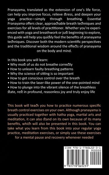 Pranayama, translated as the extension of one's life force, can help you improve focus, relieve stress, and deepen your yoga practice-simply through breathing. Essential Pranayama offers clear, approachable breath techniques and exercises for all levels of practitioner. Whether you're experienced with yoga and breathwork or just beginning to explore, this guide will help you quickly feel the benefits of pranayama techniques. Discover both the modern scientific perspectives and the traditional wisdom around the effects of pranayama on the body and mind. In this book you will learn:Why most of us do not breathe correctly How to unlearn faulty breathing patterns Why the science of sitting is so important How to get conscious control over the breath How to train the laser-like power of the one-pointed mind How to plunge into the vibrant silence of the breathless state, rest in profound, reasonless joy and truly enjoy life This book will teach you how to practice numerous specific breath control exercises on your own. Although pranayama is usually practiced together with hatha yoga, martial arts and meditation, it can also stand on its own because of its many benefits, which will also be presented in this book. You can take what you learn from this book into your regular yoga practice, meditation exercises, or simply use these exercises for a mental pause and recovery whenever needed
