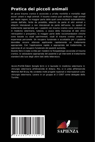 Un grave trauma cranico è associato a un'alta morbilità e mortalità negli esseri umani e negli animali. Il trauma cranico può verificarsi negli animali per molte ragioni, la maggior parte delle quali sono incidenti automobilistici, cadute dall'alto, ferite da proiettile, attacchi da parte di altri animali e attacchi intenzionali o non intenzionali da parte dell'uomo. Le opzioni di trattamento appropriate per i pazienti con trauma cranico sono controverse in medicina veterinaria, tuttavia, a causa della mancanza di dati clinici retrospettivi o prospettici, la maggior parte delle raccomandazioni cliniche sono basate su studi sperimentali, studi di trauma cranico umano o esperienza personale. Un recupero funzionale e accettabile per il paziente dovrebbe essere ottenuto applicando rapidamente un trattamento appropriato. Con l'applicazione rapida e appropriata del trattamento, la speranza di un recupero funzionale dei pazienti aumenta.Questo libro è stato scritto per rivedere la fisiopatologia associata al trauma cranico, la valutazione appropriata del paziente e gli interventi di trattamento standard alla luce degli ultimi dati della letteratura.