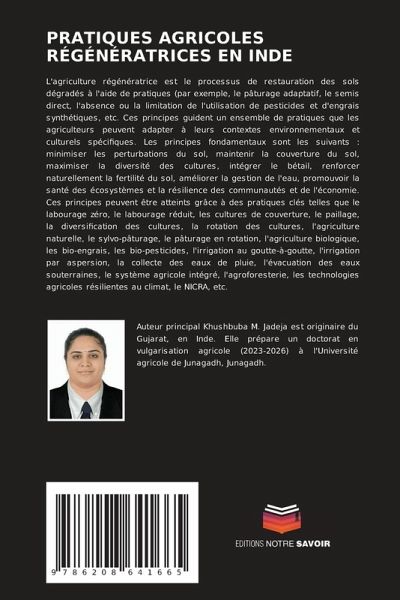 L'agriculture régénératrice est le processus de restauration des sols dégradés à l'aide de pratiques (par exemple, le pâturage adaptatif, le semis direct, l'absence ou la limitation de l'utilisation de pesticides et d'engrais synthétiques, etc. Ces principes guident un ensemble de pratiques que les agriculteurs peuvent adapter à leurs contextes environnementaux et culturels spécifiques. Les principes fondamentaux sont les suivants : minimiser les perturbations du sol, maintenir la couverture du sol, maximiser la diversité des cultures, intégrer le bétail, renforcer naturellement la fertilité du sol, améliorer la gestion de l'eau, promouvoir la santé des écosystèmes et la résilience des communautés et de l'économie. Ces principes peuvent être atteints grâce à des pratiques clés telles que le labourage zéro, le labourage réduit, les cultures de couverture, le paillage, la diversification des cultures, la rotation des cultures, l'agriculture naturelle, le sylvo-pâturage, le pâturage en rotation, l'agriculture biologique, les bio-engrais, les bio-pesticides, l'irrigation au goutte-à-goutte, l'irrigation par aspersion, la collecte des eaux de pluie, l'évacuation des eaux souterraines, le système agricole intégré, l'agroforesterie, les technologies agricoles résilientes au climat, le NICRA, etc.