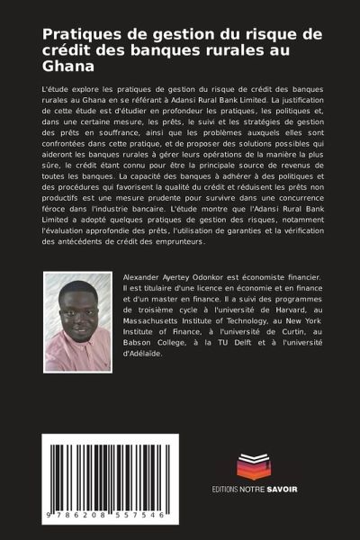 L'étude explore les pratiques de gestion du risque de crédit des banques rurales au Ghana en se référant à Adansi Rural Bank Limited. La justification de cette étude est d'étudier en profondeur les pratiques, les politiques et, dans une certaine mesure, les prêts, le suivi et les stratégies de gestion des prêts en souffrance, ainsi que les problèmes auxquels elles sont confrontées dans cette pratique, et de proposer des solutions possibles qui aideront les banques rurales à gérer leurs opérations de la manière la plus sûre, le crédit étant connu pour être la principale source de revenus de toutes les banques. La capacité des banques à adhérer à des politiques et des procédures qui favorisent la qualité du crédit et réduisent les prêts non productifs est une mesure prudente pour survivre dans une concurrence féroce dans l'industrie bancaire. L'étude montre que l'Adansi Rural Bank Limited a adopté quelques pratiques de gestion des risques, notamment l'évaluation approfondie des prêts, l'utilisation de garanties et la vérification des antécédents de crédit des emprunteurs.