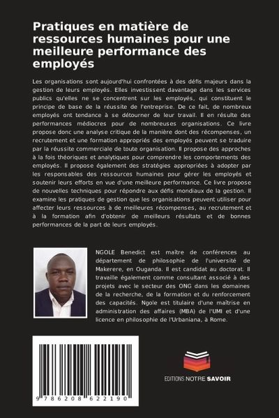 Les organisations sont aujourd'hui confrontées à des défis majeurs dans la gestion de leurs employés. Elles investissent davantage dans les services publics qu'elles ne se concentrent sur les employés, qui constituent le principe de base de la réussite de l'entreprise. De ce fait, de nombreux employés ont tendance à se détourner de leur travail. Il en résulte des performances médiocres pour de nombreuses organisations. Ce livre propose donc une analyse critique de la manière dont des récompenses, un recrutement et une formation appropriés des employés peuvent se traduire par la réussite commerciale de toute organisation. Il propose des approches à la fois théoriques et analytiques pour comprendre les comportements des employés. Il propose également des stratégies appropriées à adopter par les responsables des ressources humaines pour gérer les employés et soutenir leurs efforts en vue d'une meilleure performance. Ce livre propose de nouvelles techniques pour répondre aux défis mondiaux de la gestion. Il examine les pratiques de gestion que les organisations peuvent utiliser pour affecter leurs ressources à de meilleures récompenses, au recrutement et à la formation afin d'obtenir de meilleurs résultats et de bonnes performances de la part de leurs employés.